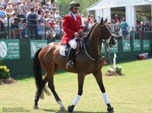 I was pulling him up to retire when I heard the whistle blow, which of course, was the POGJ telling me to quit scaring the spectators, and also to assist the jump crew by exiting the arena now since they were going to have half a day’s work to put my flying timber back up. Sorry.