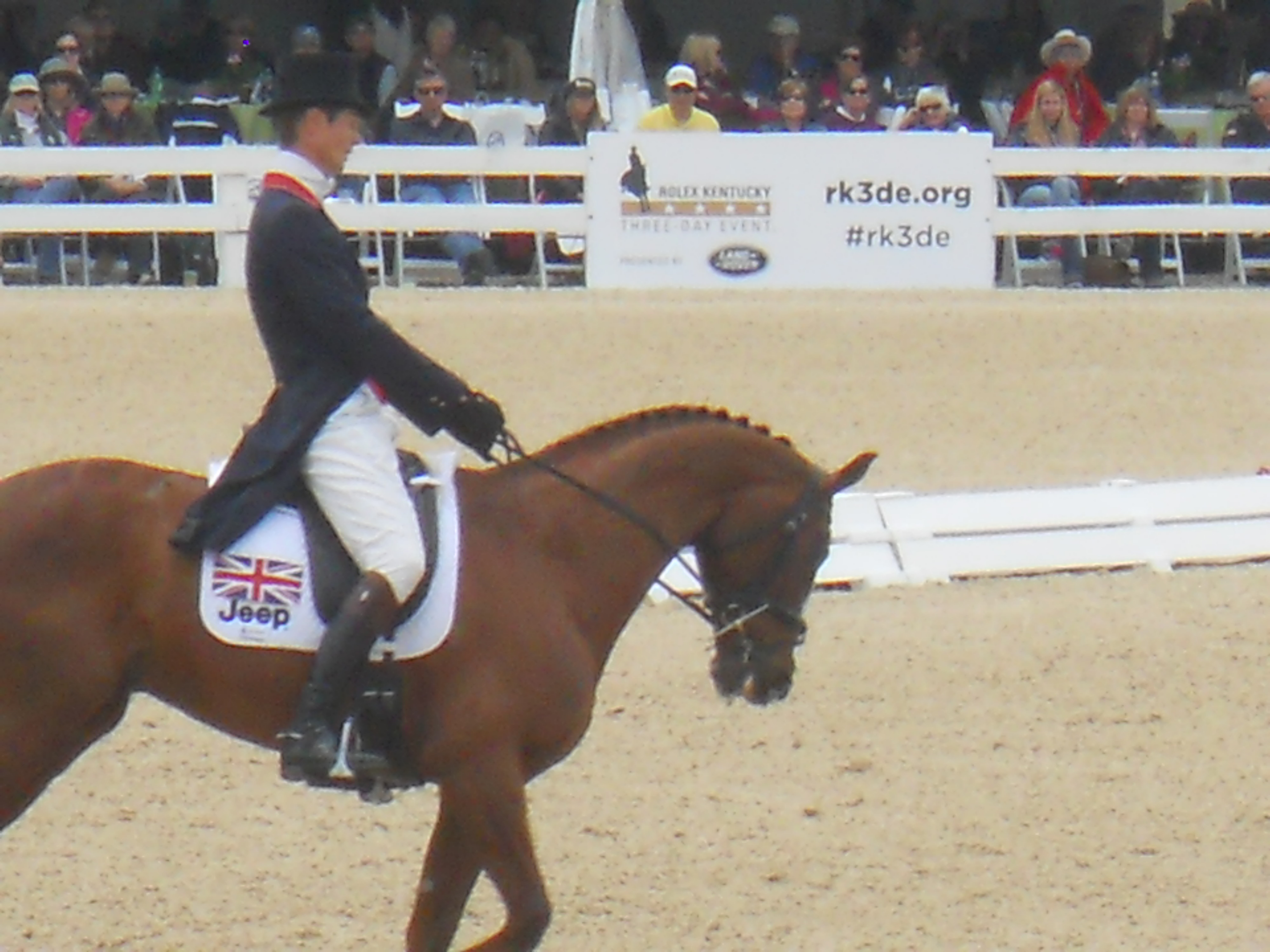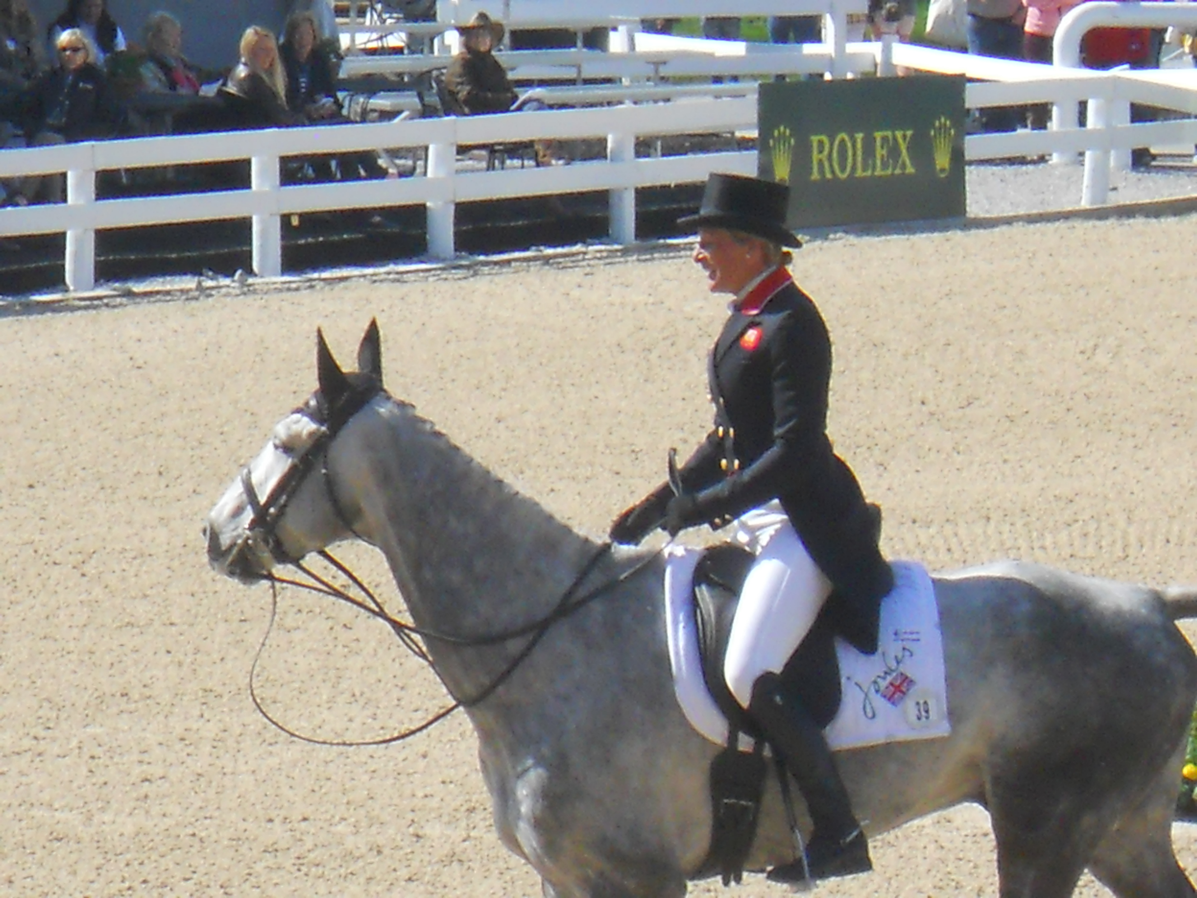 Mary King leaving the ring after a beautiful test. Sally O’Connor said she had the best shoulder in of the event so far in the competition.